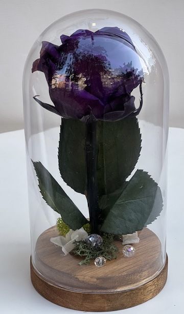 Тъмно лилава вечна роза в стъклен купол