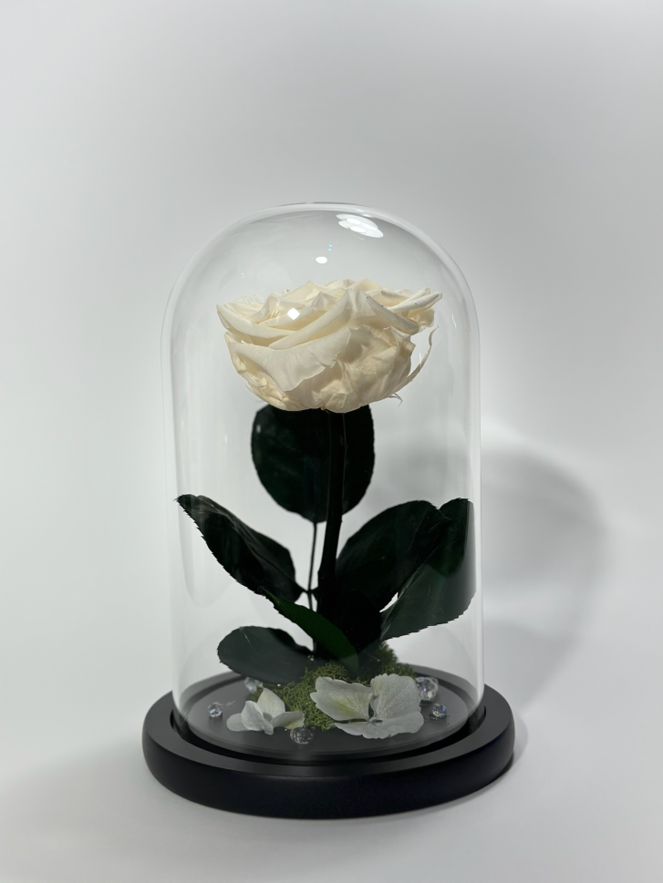 Бяла вечна роза в стъклен купол