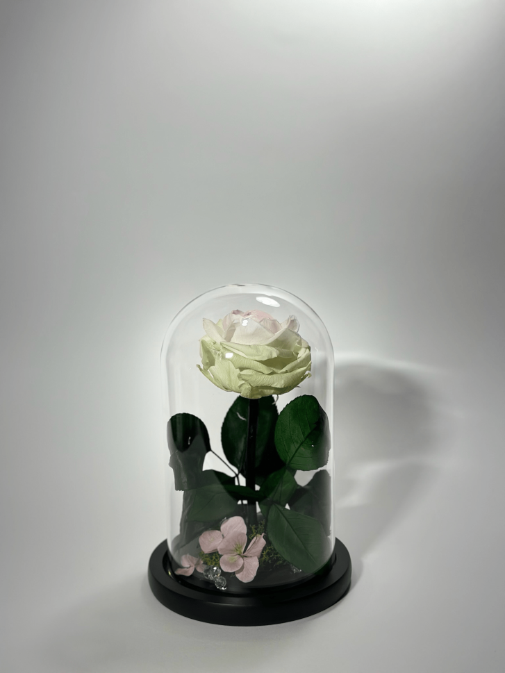 Вечната роза в стъклен купол – стилен акцент и израз на нежност, който съхранява красотата завинаги.